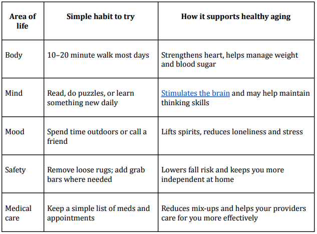 Think of healthy aging as a short list of repeatable moves: